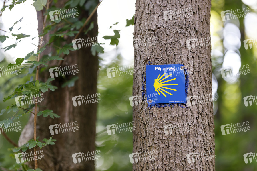 Pilger, Pilgern, Pilgerweg, Pilgerwege, Jakobsweg, Wegweiser, Wandern, Pilgermuschel, Jakobsmuschel, Wallfahrt, Glaube, Christentum, Buße, Wallfahrer, Pilgrim, Symbolbild, Symbolfoto