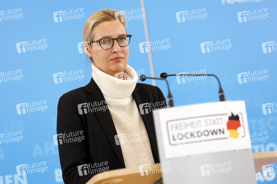 Politik, Pressekonferenz, PK, Reichstag, Sitzung, Regierung, Deutscher Bundestag, Demokratie, Abgeordnete, Parlament, Parlamentsgebäude, Bundesregierung, Volksvertreter, MdB, Mitglied des Bundestages, Politikerin, Co-Vorsitzende der AfD-Bundestagsfraktion, Oppositionsführerin im Bundestag