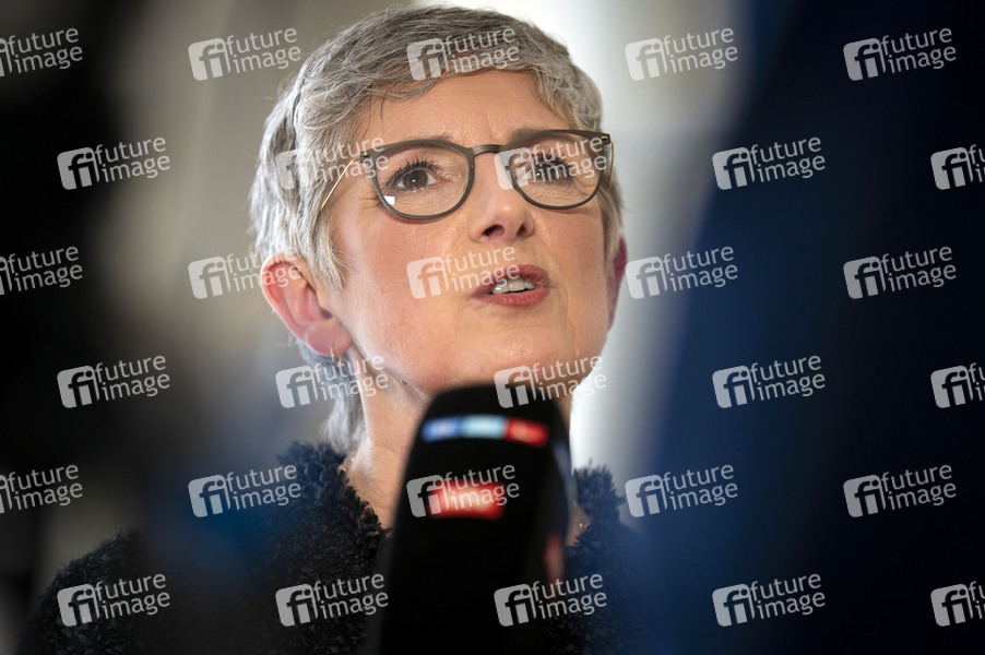 Britta Haßelmann beim Pressestatement nach der Fraktionssitzung der Bündnis 90/Die Grünen-Bundestagsfraktion im Reichstagsgebäude. Berlin, 26.02.2025