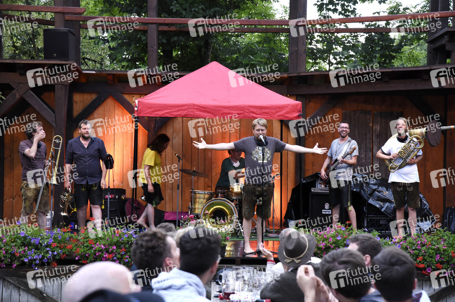 LaBrassBanda bei einem Konzert im Rahmen der Biergarten-Tour unter dem Motto 'Rettet die Wirte & die Kultur' in der Ritterschwemme auf Schloss Kaltenberg. Geltendorf, 26.07.2020