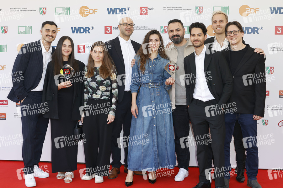 Bilal Bahadir und Cagdas Eren Yüksel mit dem Team von 'Uncivilized' bei der 61. Verleihung des Grimme Preises 2025 im Theater Marl. Marl, 04.04.2025
