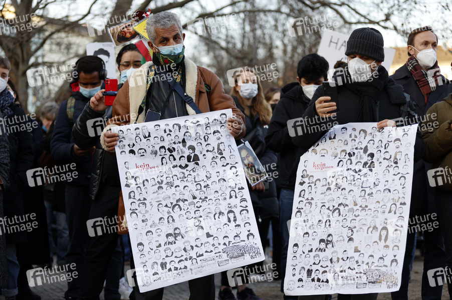 Gedenkveranstaltung zum ersten Jahrestag des rassistischen Anschlags in Hanau am Oranienplatz. Vor einem Jahr tötete ein Rechtsextremist in Hanau zehn Menschen und sich selbst. Berlin, 19.02.2021