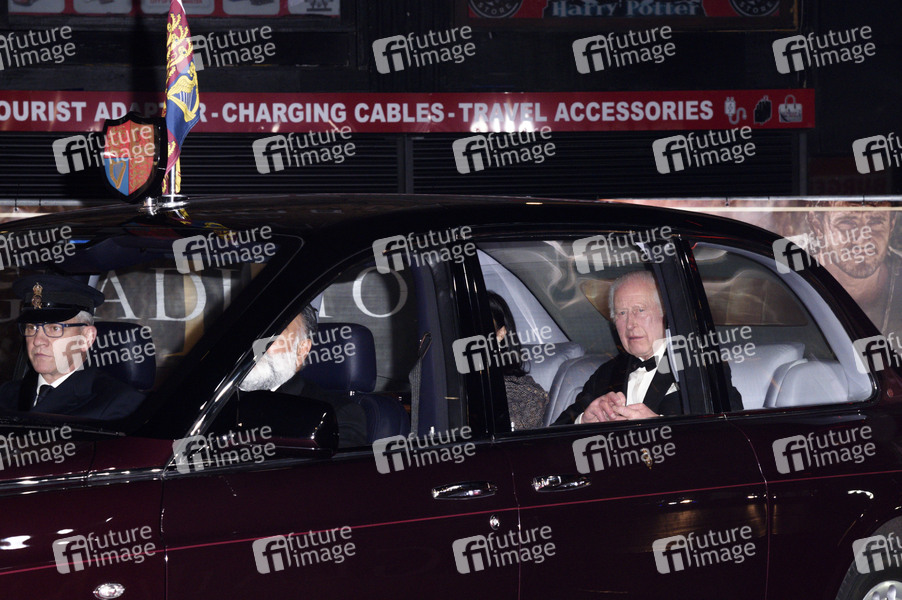 Prominenz, Celebrity, Celebrities, Royal Premiere, Filmpremiere, Film, Kino, Movie, Unterhaltung, Entertainment, Ankunft, Roter Teppich, Adel, King Charles III., Haus Windsor, König des Vereinigten Königreichs Großbritannien und Nordirland sowie weitern Commonwealth Realms, Oberhaupt des Commonwealth of Nations, Royal
