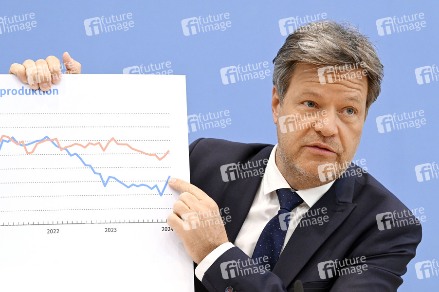 Robert Habeck bei der Bundespressekonferenz Frühjahresprojektion der Bundesregierung 2024 im Haus der Bundespressekonferenz. Berlin, 24.04.2024