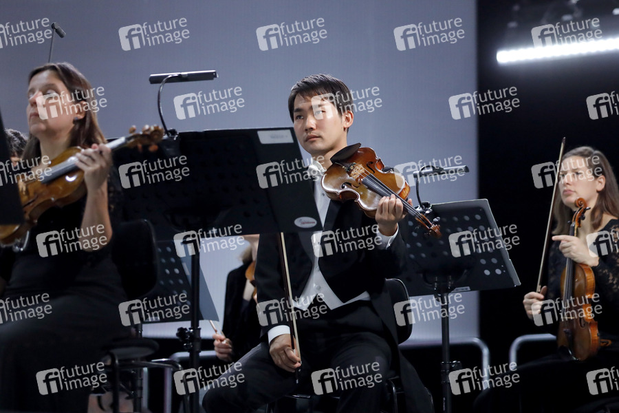 Das Beethoven Orchester Bonn bei der Generalprobe für die von einer KI vollendete 10. Sinfonie Beethovens vor der abendlichen Uraufführung im Telekom Forum. Bonn, 09.10.2021