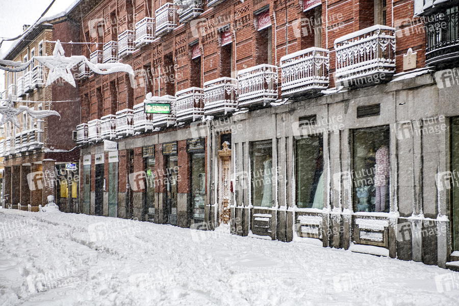 Die Region Madrid nach dem Sturmtief Filomena, das in weiten Teilen Spaniens mit starken Schneefällen für Chaos sorgte. Starker Schneefall legte das öffentliche Leben nahezu lahm. Seit 50 Jahren hatte es nicht so geschneit. Alcalá de Henares, 10.01.2021