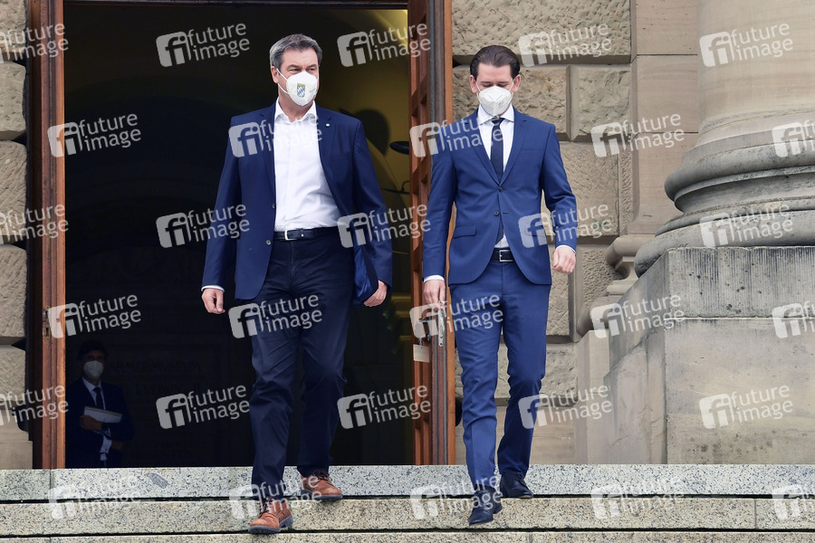 Markus Söder und Sebastian Kurz bei einem Pressestatement des bayerischen Ministerpräsidenten und des österreichischen Bundeskanzlers im Hofgarten der Staatskanzlei. München, 11.05.2021