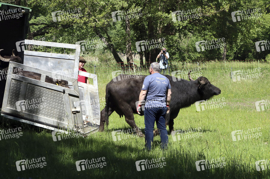 Natur, Umweltschutz, Tierschutz, Wildpflanzenschutz, Tiere, Rinder, Wildrinder, Rind, Bubalus arnee, Bovinae, Stirnwaffenträger, Hornträger, Asiatische Büffel, Wiese, Weide, Insel, Havel