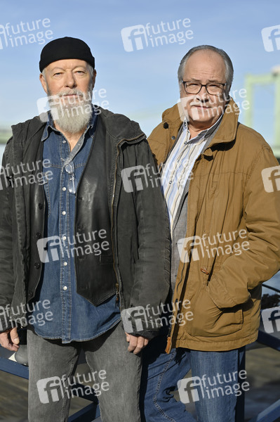 Bill Mockridge und Hartmut Volle beim Fototermin am Set der ARD TV-Serie 'Rentnercops' am Bootshaus Albatros. Köln, 15.11.2022