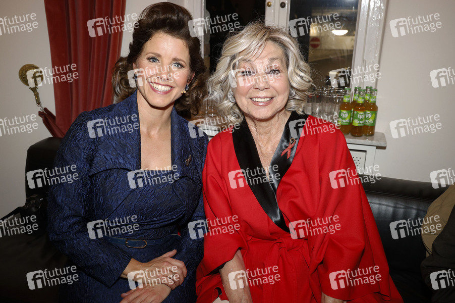 Katja Uhlig und Judy Winter bei der Spendenscheckübergabe zum Welt-Aids-Tag 2024 im Theater des Westens. Berlin, 30.11.2024