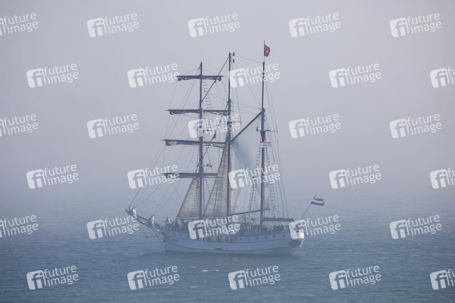 Nebel, Wetter, Gefahr, Feuchtigkeit, Küstennähe, Meer, Küste, Gewässer, Nebelvorhersage, Wetterdienst, Meteorologie, Wassertröpfchen, Kondensation, Sichtweite, Dunst, Nebelbank, Schiffsverkehr, Radar, Kollisionsgefahr, Nebelschicht, Seezeichen, Nebelhorn, Segelboot, Loth Loriën, dreimastige Barkentine, Symbolbild, Themenbild