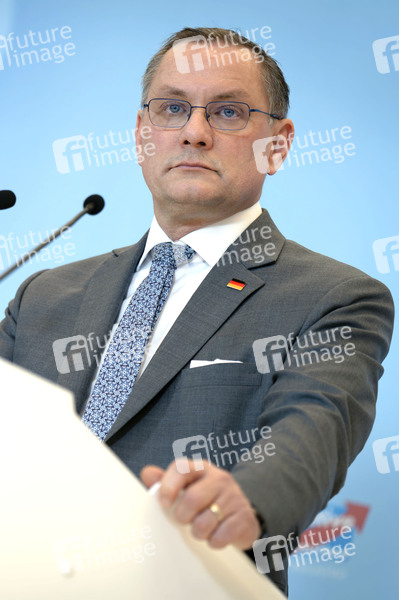 Tino Chrupalla beim Pressestatement zur Fraktionssitzung der AfD-Bundestagsfraktion im Reichstagsgebäude. Berlin, 13.01.2026