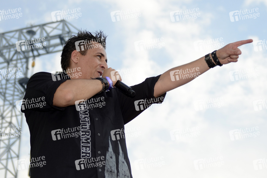 Michael 'Micky' Nauber von Domstuermer live bei der Premiere der Konzerteihe Bonn Olé zum Auftakt des Olé-Party-Sommers 2013 in der Rheinaue. Bonn, 08.06.2013