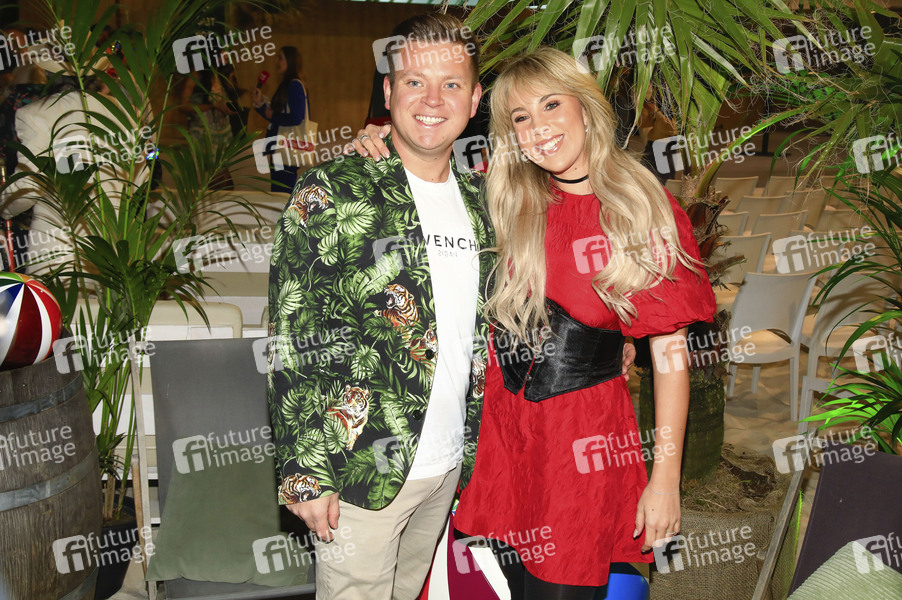 Dominik Ledea und Annemarie Eilfeld bei der Premiere des TV Realityformats 'Promis unter Palmen' im BeachMitte. Berlin, 10.02.2025