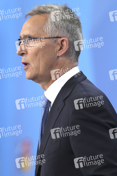 Pressekonferenz mit Jens Stoltenberg beim Treffen der Nato-Staats- und Regierungschefs im IFEMA Congress Center. Die NATO-Führer werden die historische Entscheidung treffen, ob die Zahl der Truppen mit hoher Einsatzbereitschaft auf über 300.000 erhöht werden soll, um der russischen Bedrohung zu begegnen. Madrid, 29.06.2022