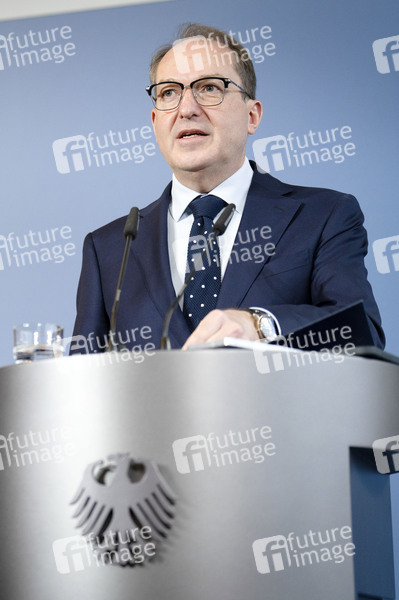 Alexander Dobrindt beim Pressestatement zu den Beschlüssen des Bundeskabinetts im Bundesministerium des Innern. Berlin, 19.11.2025