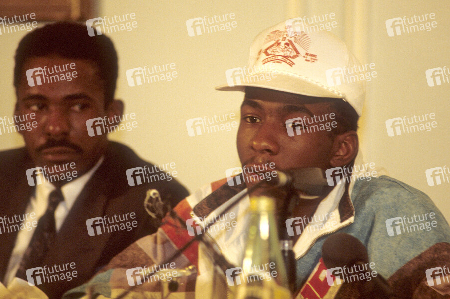 Bobby Brown bei einer Pressekonferenz im Hotel Meridian. London, 23.06.1989