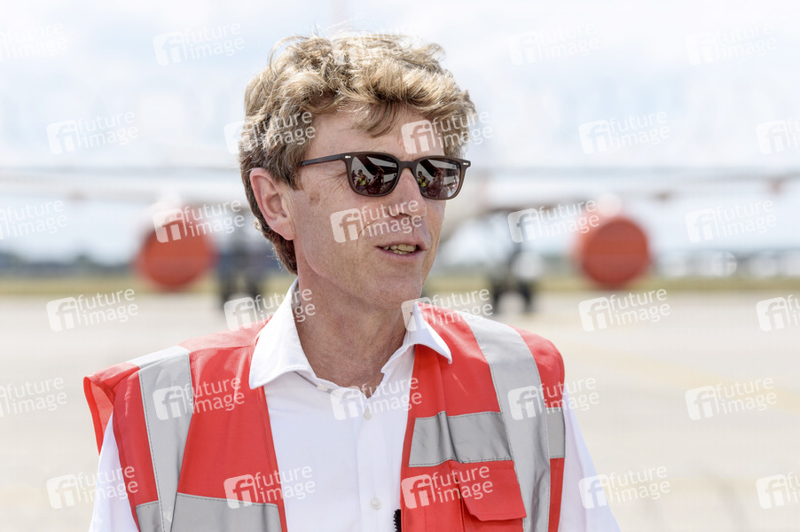 Engelbert Lütke Daldrup, Vorsitzender der Geschäftsführung Flughafen Berlin Brandenburg, beim Besuch der Baustelle des neuen Vorfeld E2 am Flughafen Berlin Brandenburg. Schönefeld, 14.07.2020