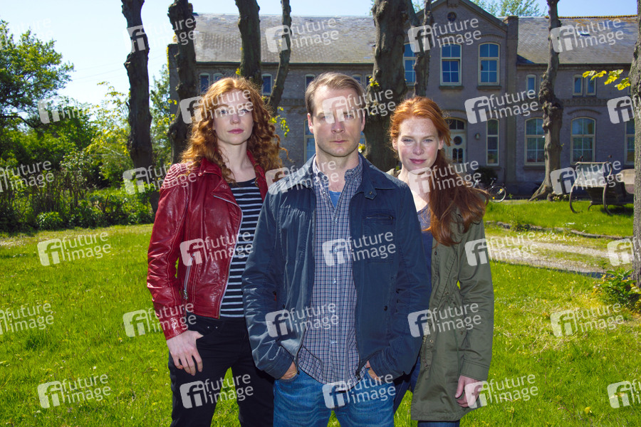 Marleen Lohse, Hinnerk Schoenemann und Henny Reents beim Fototermin am Set das ARD-Krimis 'Nord bei Nordwest' auf dem Flügger Hof. Fehmarn, 20.05.2014