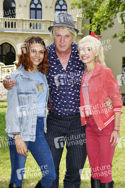 Harriet Herbig-Matten, Detlev Buck und Katharina Hirschberg beim Fototermin am Set der Amazon Original Serie 'Bibi & Tina' auf Schloss Reichenow. Reichenow-Möglin, 06.08.2019