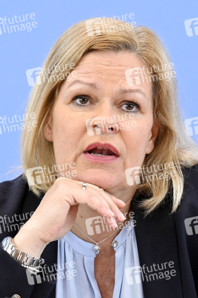 Nancy Faeser bei der Bundespressekonferenz zu den Fallzahlen für die Politisch Motivierte Kriminalität (PMK) 2023 im Haus der Bundespressekonferenz. Berlin, 21.05.2024
