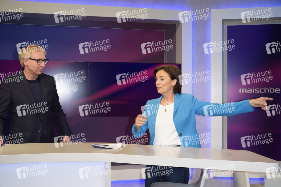 Johannes Varwick und Sandra Maischberger in der ARD-Talkshow 'maischberger' im Studio Berlin Adlershof. Berlin, 21.05.2025