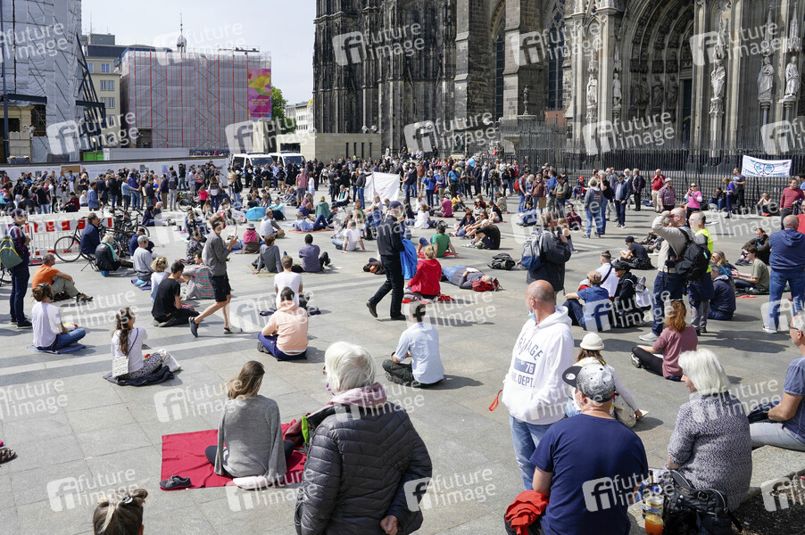 Demonstrationen des Bündnis Köln gegen Rechts und Gegner der Corona Corona Massnahmen auf dem Roncalliplatz. Köln, 16.05.2020