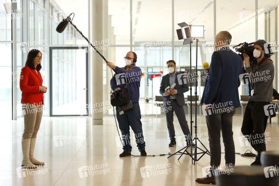 Katrin Göring-Eckardt bei einem Pressestatement der Grünen vor der Fraktionssitzung auf der Fraktionsebene im Reichstagsgebäude. Berlin, 23.03.2021