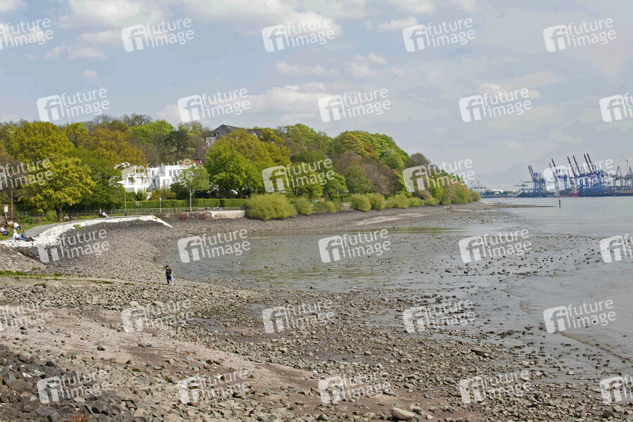 Niedrigwasser am Elbstrand zwischen Övelgönne und Teufelsbrück. Hamburg, 27.04.2020