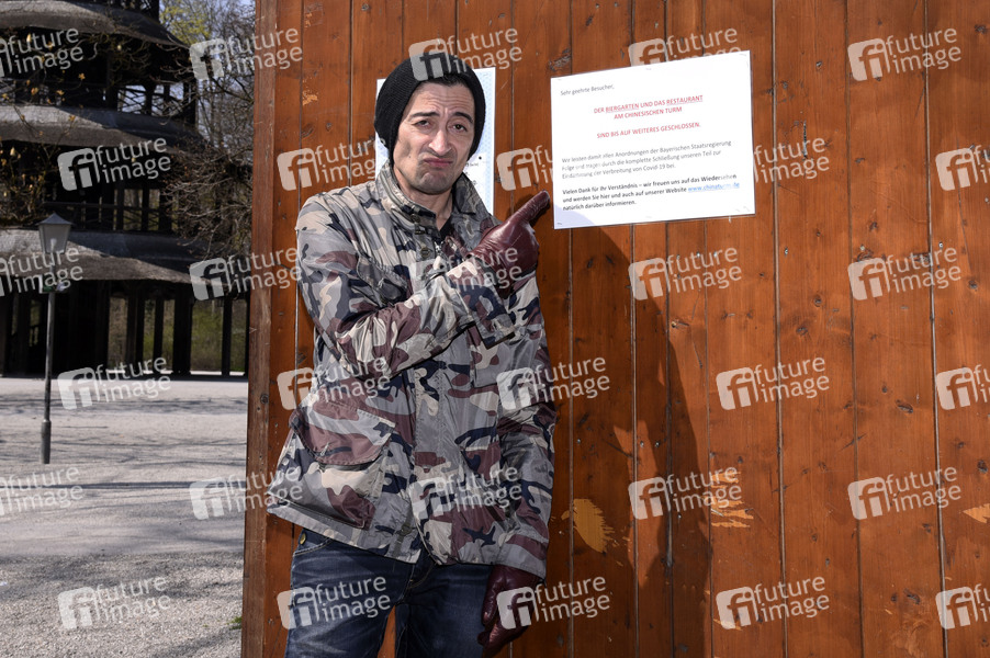 Adrian Can bei einem exclusiven Photoshooting während der Corona-Krise am Biergarten Chinesischer Turm im Englischen Garten. München, 03.04.2020