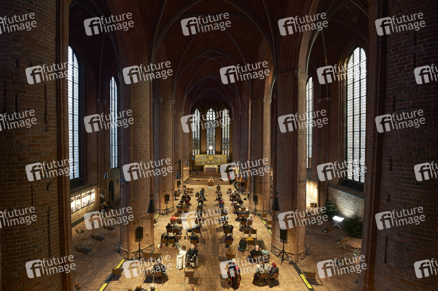 Adventskalender 2020 Gottesdienst unter Einhaltung der Hygiene- und Abstandsregeln in der Marktkirche Hannover (Fotofreigabe durch Marktkirchenpastorin Hanna Kreisel-Liebermann). Hannover, 17.12.2020