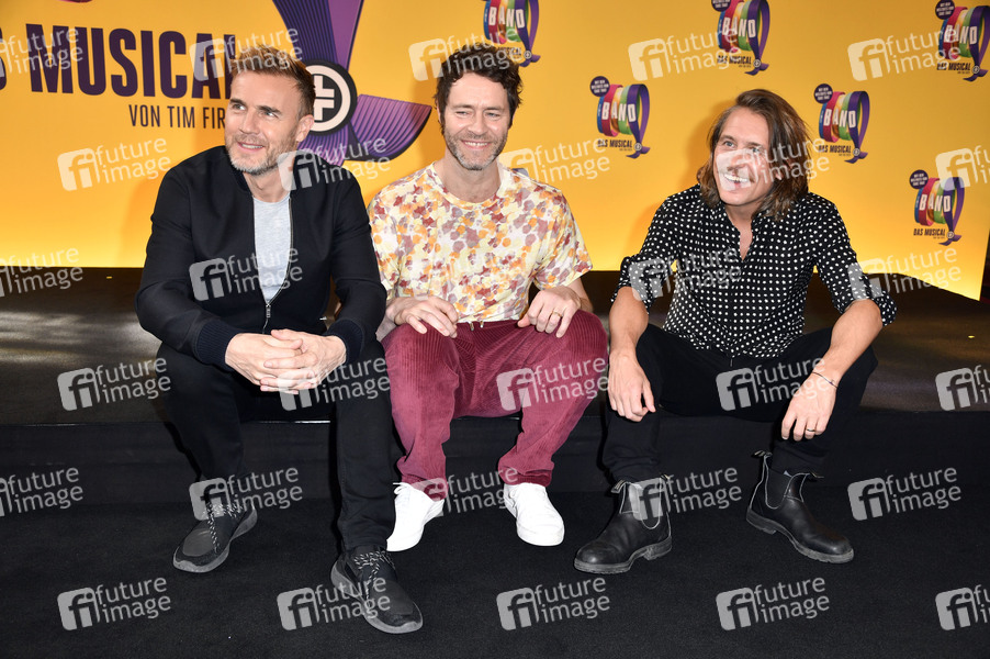 Gary Barlow, Howard Donald und Mark Owen von Take That beim Photocall zu 'The Band - Das Musical' im Stage Theater des Westens. Berlin, 01.04.2019