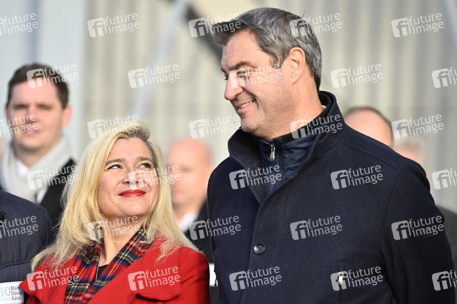 Melanie Huml, Markus Söder bei der Jubiläumsveranstaltung '30 Jahre Main-Donau-Kanal' am Bamberger Hafen. Bamberg, 25.11.2022