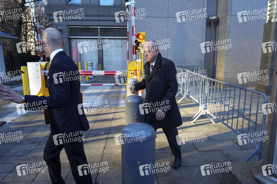 Ed Mullins verlässt das Gericht, nachdem er im Zusammenhang mit einer Razzia in seinem Haus und seinem Gewerkschaftsbüro im vergangenen Jahr strafrechtlich verfolgt wurde. Der frühere Leiter der Sergeants Benevolent Association der NYPD stellte sich am Mittwochmorgen den Vorwürfen der Veruntreuung von Gewerkschaftsgeldern. New York, 23.02.2022