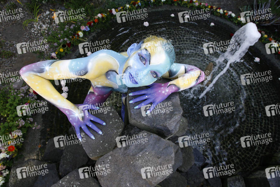 Bodypainting, Erotik, Frau, nackt, draußen, Steine, Felsen, Springbrunnen, weiblich, erotic, woman, nude, outdoor, female, rocks, stones, fountain