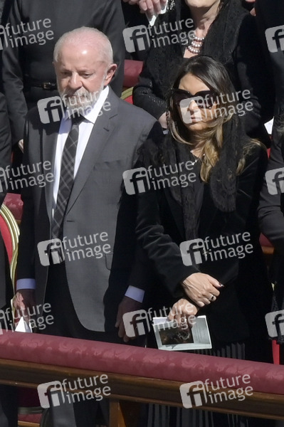 Luiz Inacio Lula da Silva mit Ehefrau Rosangela da Silva bei der Trauermesse für den verstorbenen Papst Franziskus auf dem Petersplatz. Vatikanstadt, 26.04.2025