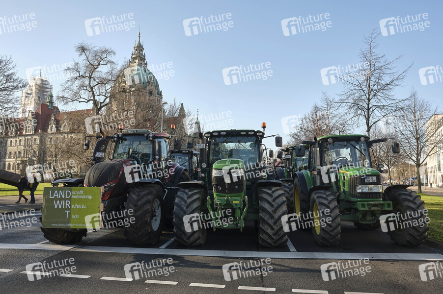 Treckerdemonstration 'Land schafft Verbindung' gegen die neue Düngeverordnung und strengere Vorgaben zum Arten- und Tierschutz von niedersächsischen Landwirten auf dem Trammplatz vor dem Rathaus. Hannover, 17.01.2020