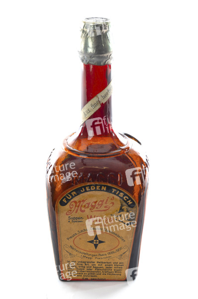 Maggi ist ein nach seinem Gründer Julius Maggi benanntes Schweizer Unternehmen der Lebensmittelindustrie, das vor allem für Instantsuppen, Brühwürfel, Flüssigwürze, Fertigsaucen und Fertiggerichte bekannt ist. Im Bild eine historische Flasche Maggi Würze. (Symbolfoto, Themenfoto)