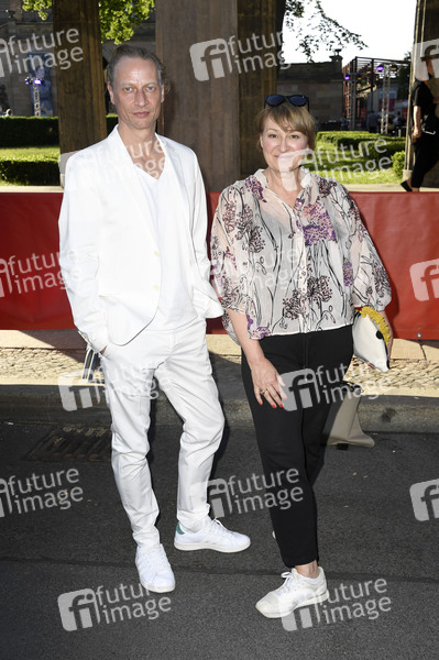 Victor Schefe und Andreja Schneider bei der Premiere des Kinofilms 'Ich bin dein Mensch / I'm Your Man' auf der Berlinale Summer Special 2021 / 71. Internationale Filmfestspiele Berlin im Freiluftkino Museumsinsel. Berlin, 14.06.2021