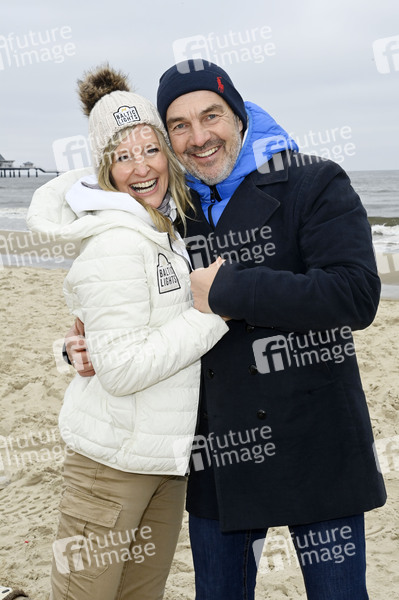 Bianca Karsten mit Partner Sven Vogt beim 9. Baltic Lights 2025 Charity-Schlittenhunderennen zu Gunsten der Welthungerhilfe zwischen der Seebrücke Ahlbeck und der Seebrücke Heringsdorf. Heringsdorf, 01.03.2025