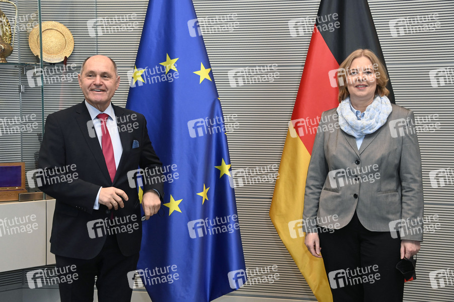 Wolfgang Sobotka und Bärbel Bas beim Empfang des Präsidenten des österreichischen Nationalrates im Reichstagsgebäude. Berlin, 25.01.2022