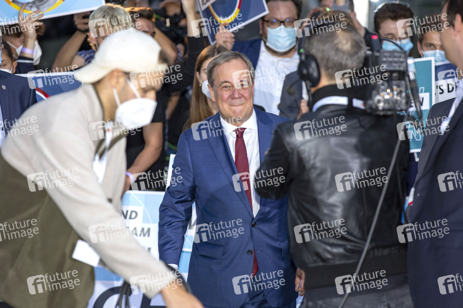 Armin Laschet beim 'Triell - Dreikampf ums Kanzleramt' von ARD und ZDF mit den Kanzlerkandidaten im Studio Berlin-Adlershof. Berlin, 12.09.2021