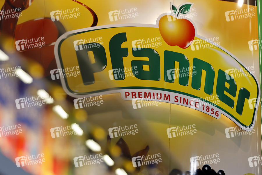 Pfanner, Pfanner-Logo, Icetea, Ice Tea, Pfanner-Tee, Tee, Getränke, Anuga, Food, Ernährung, Essen, Trinken, Nahrung, Nahrungsmittel, Food-Messe, Lebensmittel-Messe, Lebensmittelmesse, FoodTech, Fachmesse, Innovationen, Nachhaltigkeit, pflanzliche Lebensmittel, Food-Trends, Laborfleisch, Flexitarismus, Tierwohl, neue Produkte, Anuga-Logo, Fahnen, Anuga-Fahnen, Symbolfoto, Symbolbild