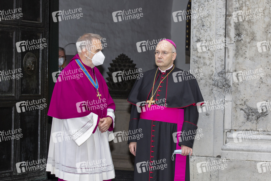 Rolf-Peter Cremer und Bischof Dr. Helmut Dieser beim ökumenischen Gottesdienst für die Opfer der Flutkatastrophe im Hohen Dom zu Aachen. Aachen, 28.08.2021