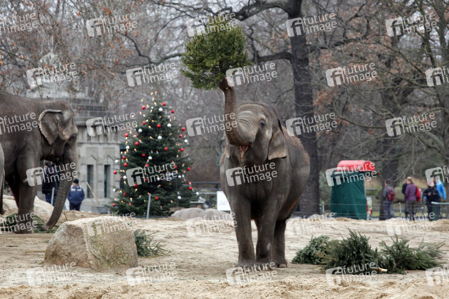 Tiere, Weihnachtsbaum, Christbaum, Tannenbaum, Tierpark, Zoo, Elefant