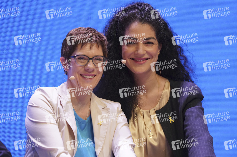 Annegret Kramp-Karrenbauer und Nariman Hammouti-Reinke beim Wahlkampfauftakt der CDU und CSU zur Europawahl 2019 in der Halle Münsterland. Münster, 27.04.2019