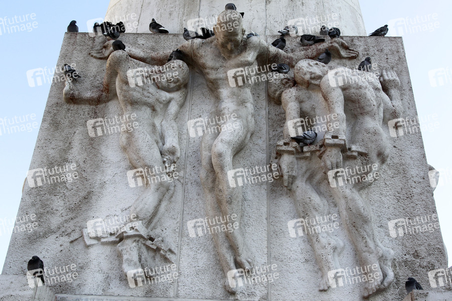Dam Platz, niederländisches Nationaldenkmal, Obelisk aus Beton und Travertin, 22 Meter hoch, erbaut 1956, Denkmal, Mahnmal, Tauben