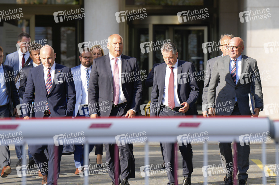 Alexander Hoffmann, Roman Poseck, Thorsten Frei und Alexander Throm beim Pressestatement der CDU/CSU nach den Beratungen zwischen Ampel, Union und Ländern im Bundesinnenministerium. Berlin, 10.09.2024