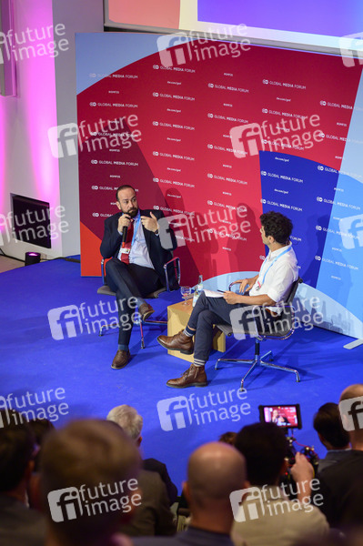 Internationale Medienkonferenz, globale Herausforderungen des Journalismus und der Medienwelt, Pressefreiheit, Desinformation, Digitalisierung, Künstliche Intelligenz, Konferenz, Gespräche, Diskussionen, syrischer Informationsminister, Moderator