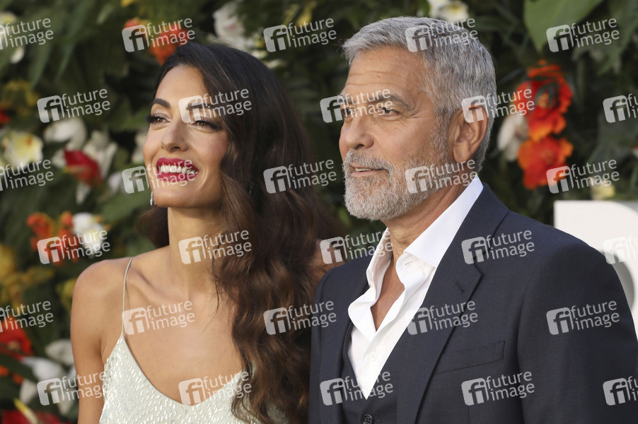 George Clooney mit Ehefrau Amal Alamuddin Clooney bei der Weltpremiere des Kinofilms 'Ticket ins Paradies / Ticket to Paradise' im Odeon Luxe Leicester Square. London, 07.09.2022